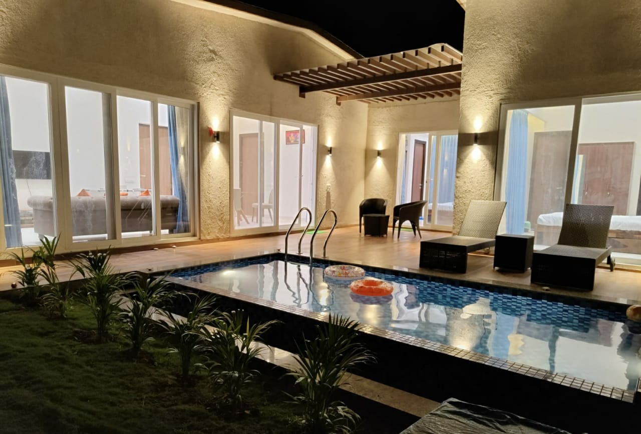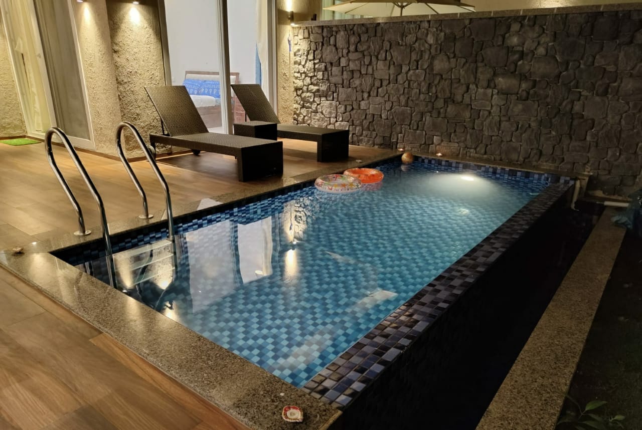 Located in a secure gated community along Khopoli-Pali Road, Aimas Suite is an ideal retreat for 4-6 travellers seeking comfort and convenience. Whether you're visiting Imagica Theme Park or exploring the scenic beauty of Khopoli, this 2 BHK haven offers a plunge pool, lush lawn, and stylish studio-style living space—perfect for a fun-filled staycation or a relaxing weekend escape.