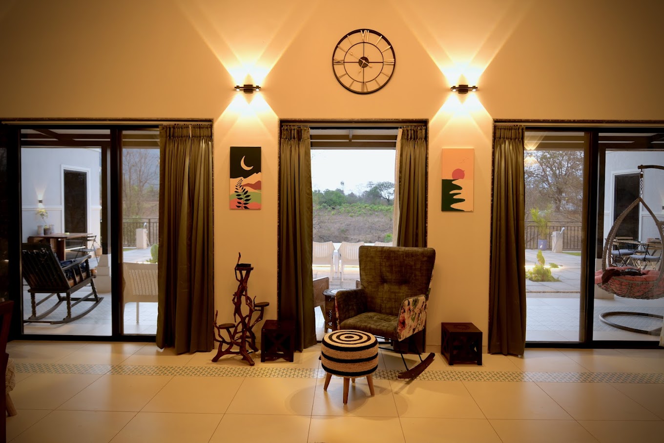 Escape to The Rising Sun Far,, a meticulously curated 3-acre sanctuary nestled in the lush foothills of Karjat. Designed for discerning travelers seeking both serenity and engagement, our property blends contemporary comforts with rustic charm, offering an exclusive getaway just a short drive from Mumbai and Pune.